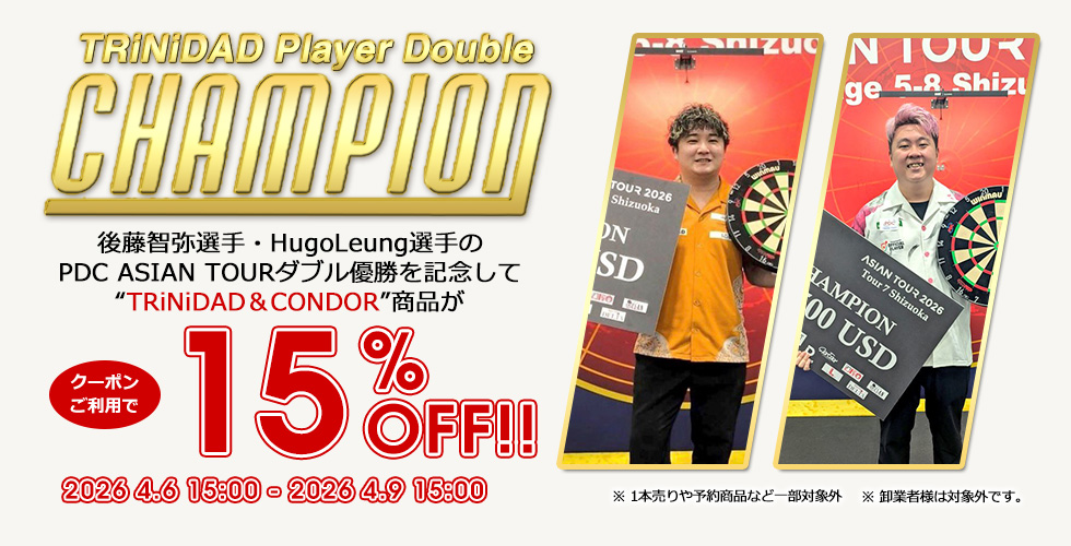 TRiNiDAD&CONDORの商品が15%OFF! ※クーポンのご利用は会員登録が必要です。 ※予約商品や1本販売、限定商品など一部対象外があります。 ※その他クーポンとの併用は出来ません。
