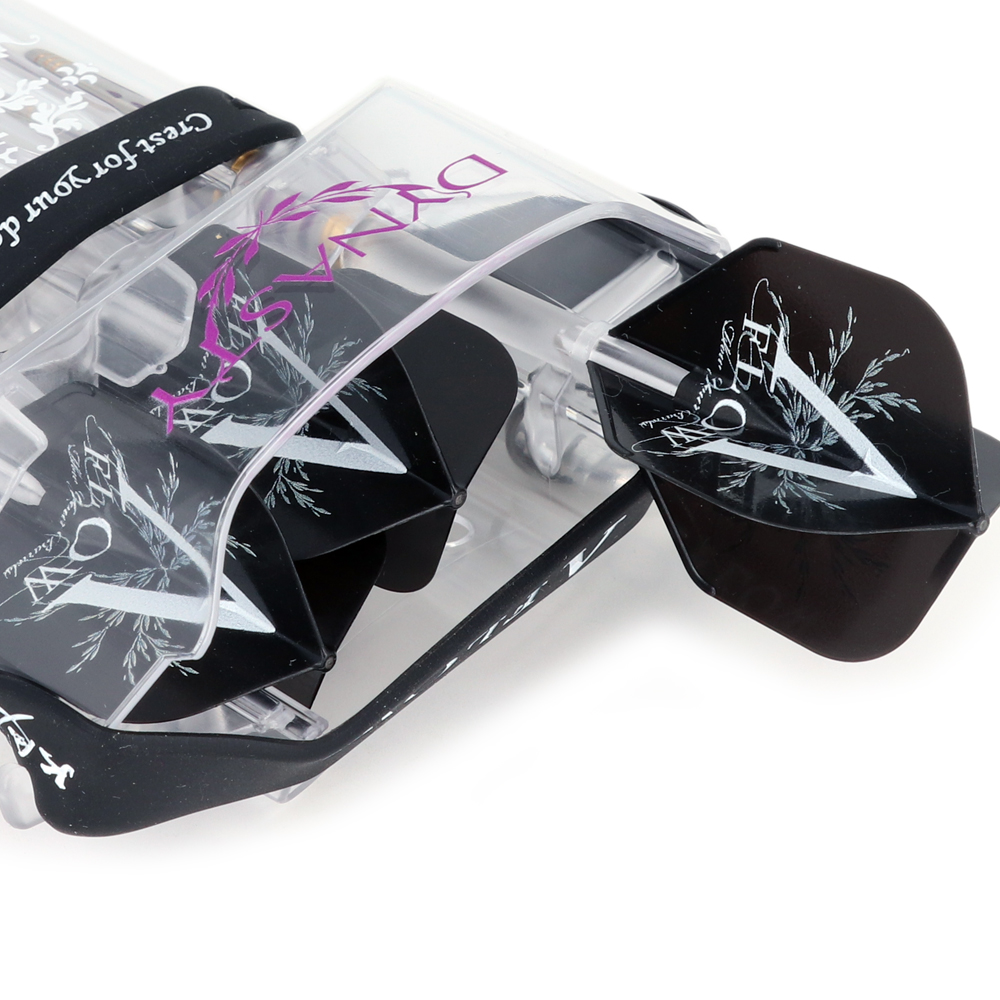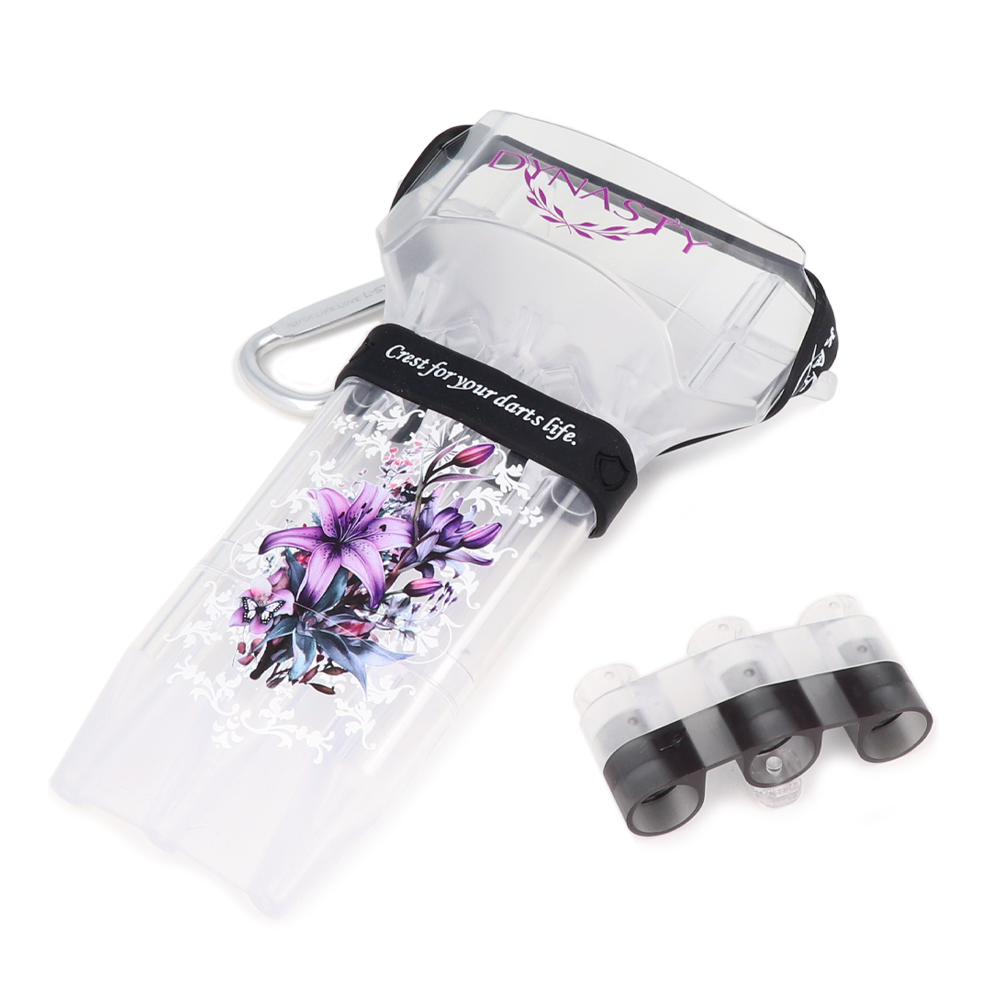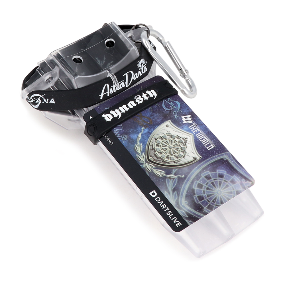L-style×Chiba Yukina×DYNASTYコラボKRYSTAL ONE 第2弾 千葉選手のユニフォームデザインを落とし込んだ華やかなアートワーク。 本体のパーツが3分割でき、それぞれのパーツを追加し自由に組み替えることによって自分好みのケースが作れます。 リストバンドは【A-FLOW】【KATANA】【TRIPLEIGHT】【ASTRA】の中からお好みのブランドロゴを上にして使用する事ができます。 ■付属品:カラビナ×1・リストバンド×1・カードホルダー×1・ジョイントパーツ×2 ■収納:セッティングダーツ1set・カード ■カラー:クリアー ※画像のダーツ、フライト、シャフト、カードは付属致しません。