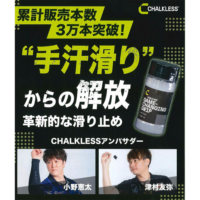 滑り止め「チョークレス」がお手ごろ価格で試せるトライアルパックです。 1袋で約5回お使いいただくことができます。 ボトルを買う前に効果を試したい、自分に合うがどうか知りたい、といった方におすすめです。 チョークレスは、滑り止めを必要とする全ての人のために開発された滑り止め。 驚異的なグリップ力は、粒状に加工したパウダー「モンスターパウダー」によって生み出されます。 モンスターパウダーは皮脂を吸収し、水を弾く革新的な技術により驚異的なグリップ力を発揮。 手につけた瞬間から効果を最大限発揮できるのも特徴のひとつです。 【使用方法】 乾いた状態の手に適量を取り細かい粒が無くなるまですり潰しながら伸ばしてご利用下さい。 ご使用後は石鹸などで簡単に洗い流せます。