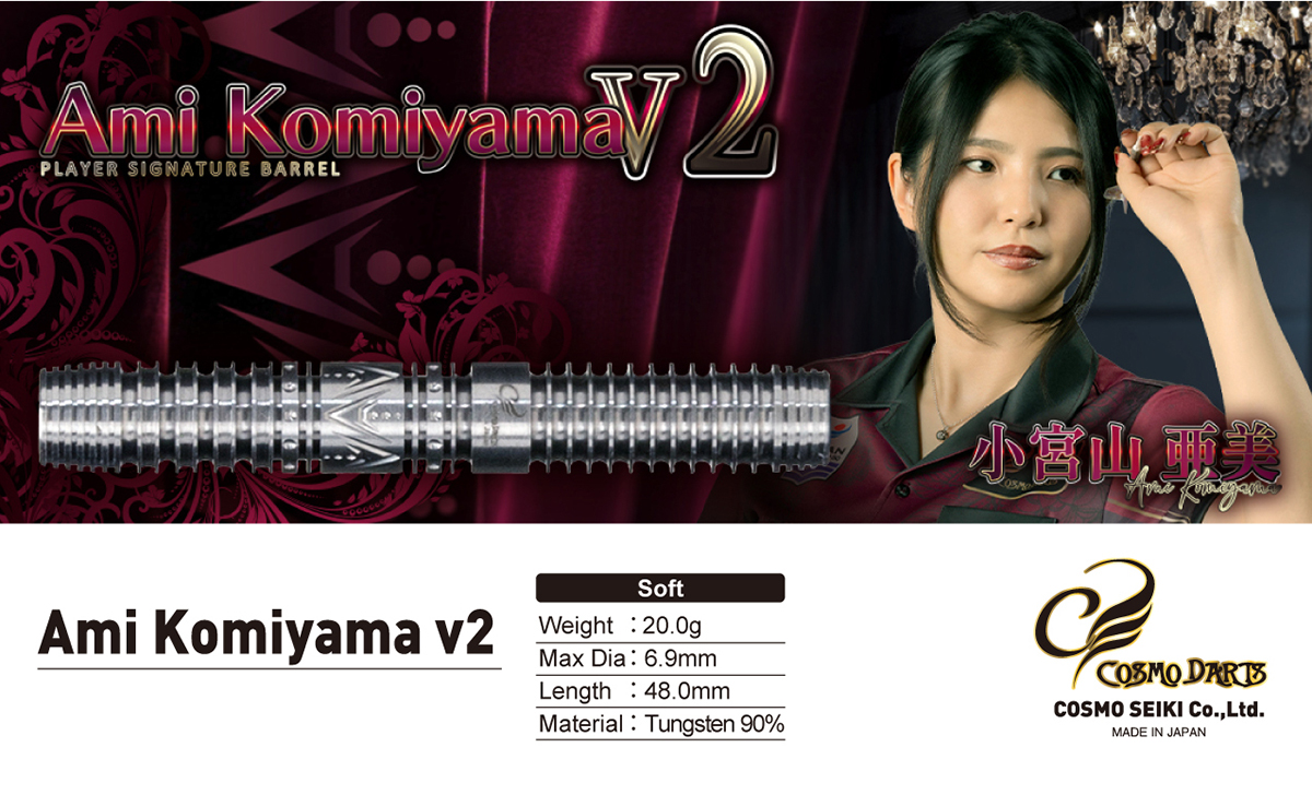 前作「Amigo」から3年半。 小宮山亜美選手待望のセカンドモデルが遂に登場! トルピードからストレート形状へと変貌を遂げた今作は、"攻めた"カットで全体をデザイン。 極細リングカットを深い溝で配置し、一切のグリップのズレも許さない仕様です。 カット配置はセンター位置を把握しやすいものとなっており、両端の感触にも変化を持たせています。 20gの重量と強い掛かりを持たせた「Ami Komiyama v2」。 力を抜いてしっかり狙いを定められるバレルです。 ■スペック 材質:90%タングステン 単体重量:20.0g 全長:48.0mm 最大径:6.9mm