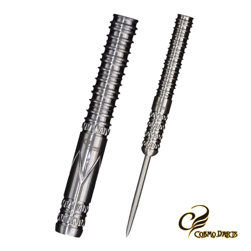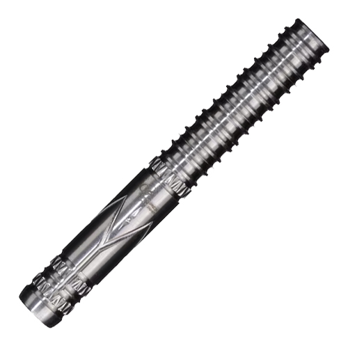 今もなお進化を続ける、馬場善久選手の第5弾となるバレルが登場! 特徴は恒例となっているイニシャルの「Y」をモチーフにしたデザインカット。 そして攻めたカットは長時間の試合に耐えられるようにと、馬場選手のダーツ哲学を体現したバレルが完成しました。 メインの構成はV4やディスカバリーレーベルでも使われたトリプルリング+ダブルリング。 今回は間隔と幅が調整され、両端をステップ加工することで、より指に食いつきやすくなり安定感が増しました。 グリップ感にアクセントを与えるV字カットは、グリップの再現性を高める役割も果たします。 ■スペック 材質:90%タングステン 単体重量:22.0g 全長:50.8mm 最大径:6.6mm