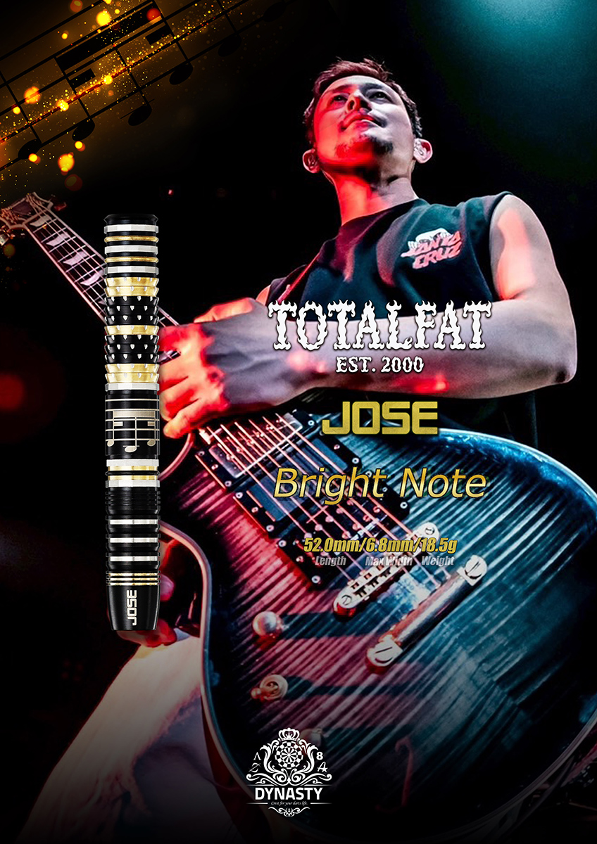「Bright Note」──その名の通り、明るく輝く音のように、一投ごとに輝きを奏でる特別なバレル。 DYNASTYとTOTALFAT Joseさんによるコラボ第3弾は、ロングストレートのシルエットに、 6.8mmの確かなグリップ感と細やかなビートを刻むカットを融合。 音楽が希望を奏でるように、 一投ごとに刻まれる“輝きの音色”があなたのプレイを彩りますように。 ■スペック 素材 : Tungsten90% 全長 : 52.0mm 最大径: 6.8mm 重量 : 18.5g(バレル単体) ■セット内容 Shaft: LARO Tip : Premium Lip Point Flight: Dee.flight