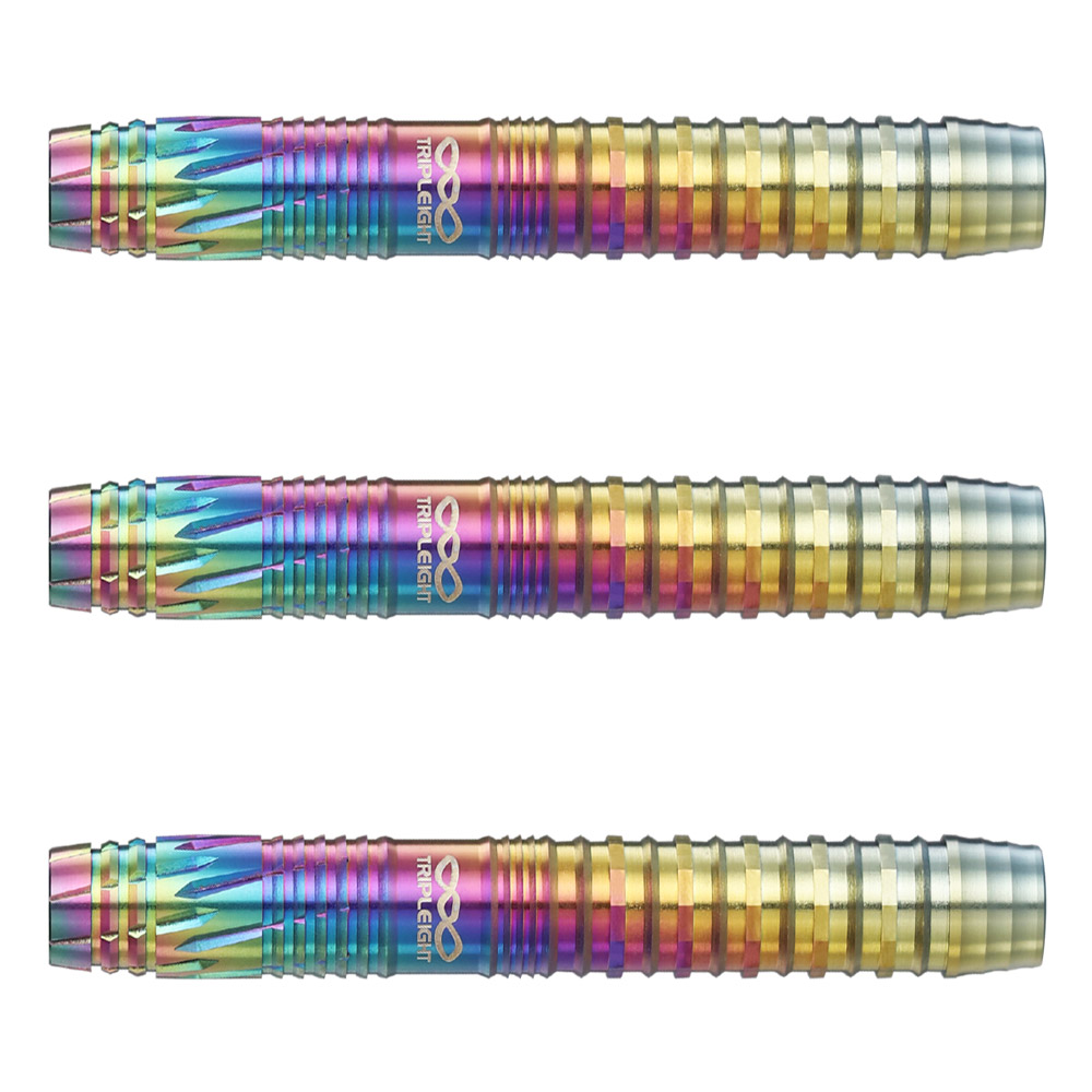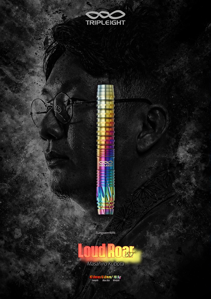 久保田將裕選手のアグレッシブなプレースタイルを体現した"Loud Roar"から、ストレートタイプが登場。 Loud Roarのフィーリングを継承しながら、全長を3mm延ばし、重量もわずかに増すことで、直進性と安定感をさらに高めた仕様へと進化。 ストレート形状に最適化されたボディは、リリース時のブレを抑制し、ラインを描くような鋭い飛びを実現。 フロントエリアには、インパクト抜群のスパイラルカットを配置。強いグリップ力と安定した押し出しをサポートする。 メインエリアには、Loud Roarの象徴ともいえる ナットカット × トライアングルカット のコンビネーションを継承。 指先に明確な掛かりを与えながらも、抜けはスムーズ。 ストレート化によって、そのカット性能はよりダイレクトにプレイヤーへと伝わる。 咆哮の名を冠したその一本は、より真っ直ぐに、より力強く、ターゲットを貫く。 ■スペック 素材 : Tungsten90% 全長 : 47.0mm 最大径: 6.8mm 重量 : 19.5g(バレル単体) ■セット内容 Shaft: LARO Tip : Premium Lip Point Flight: Dee.flight