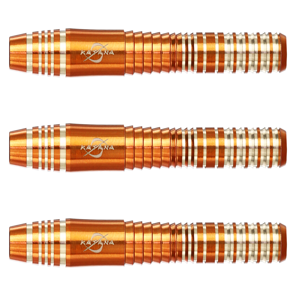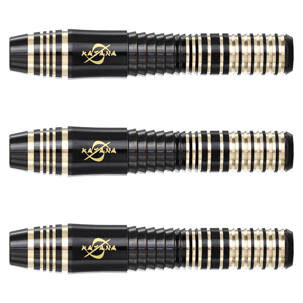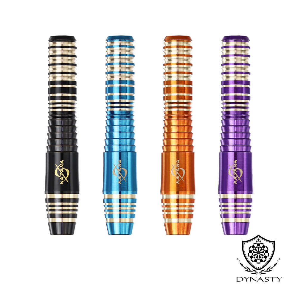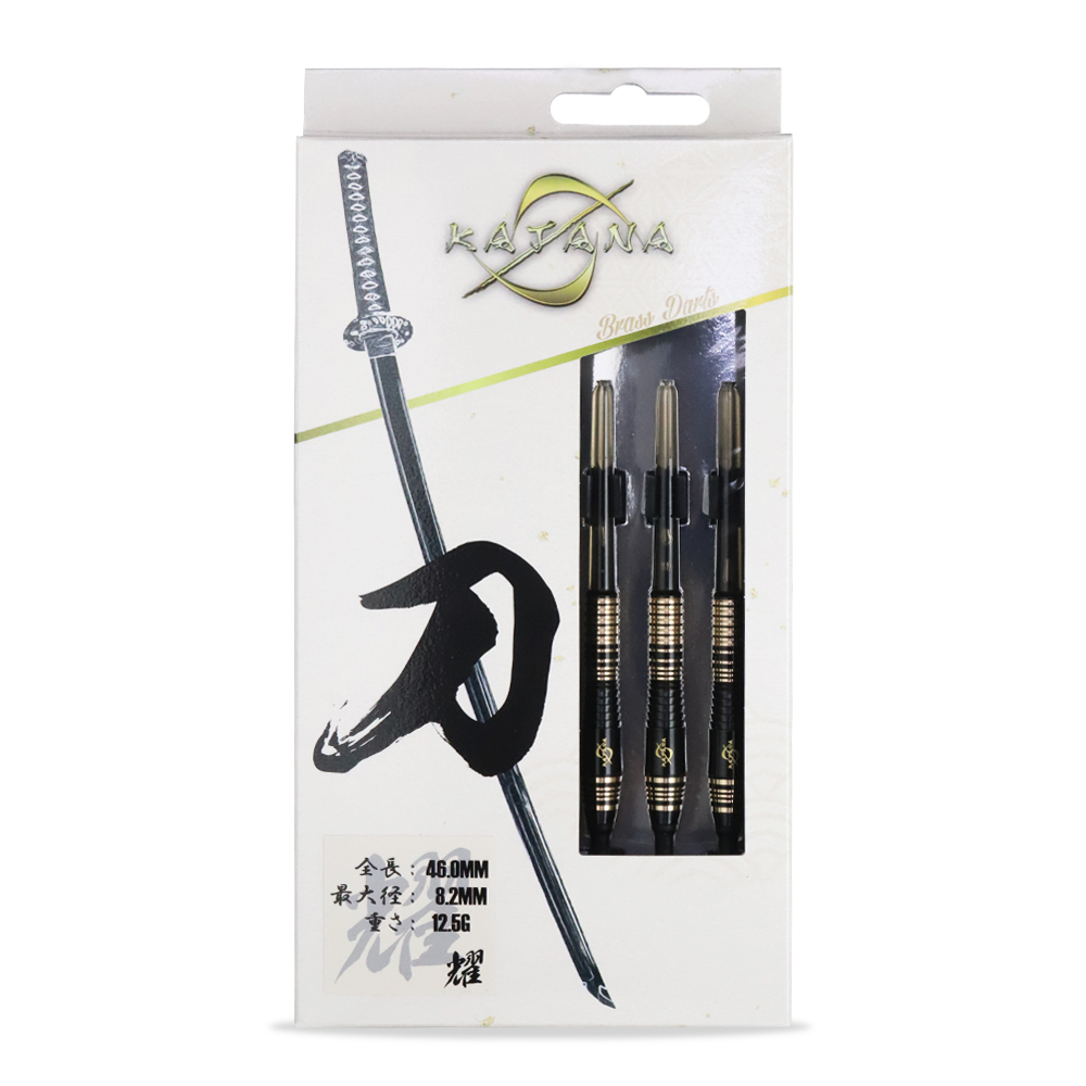 刀ブランドから、BRASS DARTSが登場。 真鍮ならではの柔らかな手触りと、刀シリーズらしい精密な造形が融合。 Brass素材でありながら、細部のラインやカットにまで一切の妥協を許さず、 シリーズ伝統の鋭く冴えたカットを精緻に配置。 カラーは、光を纏う4つの輝き。 そして、その全てを包み込む地のゴールドが艶やかに輝き、まさに名の通り“耀く”一本。 KATANAが誇る意匠と美学を、手軽に体感できるブラスモデル。 ■スペック 素材 : BRASS 全長 : 46.0mm 最大径: 8.2mm 重量 : 12.5g(バレル単体) ■セット内容 Shaft Tip Flight Slim Darts Case