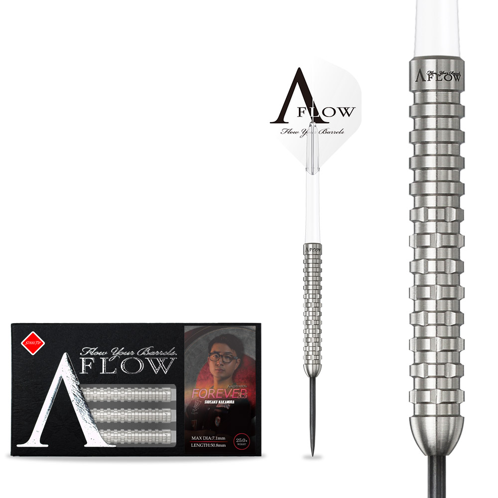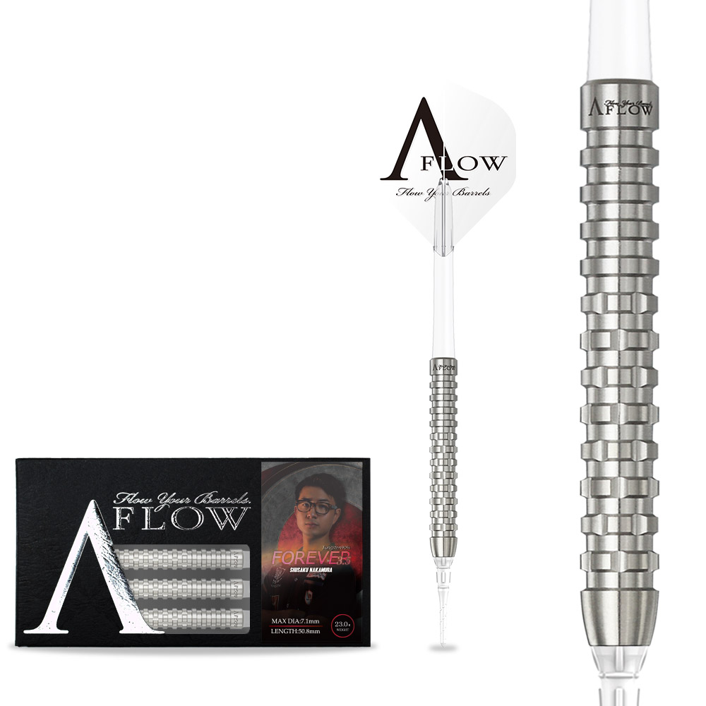 極限まで“握りの存在感”を追求して進化した、FOREVER3.5が登場。 前作から さらに重く、さらに太く、さらに深く。 中村周作選手の理想を叶えるため、細やかな変更ではなく“段階そのもの”を引き上げたアップデートが施された。 シリーズ最大の特徴である超幅広のカットピッチは継承。 指を置いた瞬間に迷いなくフィットする、唯一無二のFOREVER"らしい"グリップを実現。 フロントに、鋭く・深く・大胆に刻まれたワイドスパインリッジは前作よりもカットエリアを後方へ拡張することで、多様なアプローチに対応する高い操作性を獲得した。 23.0gの重量から生まれる重厚な飛びと、幅広カットが導く確かな存在感。 磨き抜かれた重みとフィットが導く、FOREVERシリーズの完成度を更新する一作が完成。 ■スペック 素材 : Tungsten90% 全長 : 50.8mm 最大径: 7.1mm 重量 : [2BA]23.0g(バレル単体) / [STEEL]25.0g(ポイント含む) ■セット内容 Shaft:LARO Tip:Premium Lip Point (2BAのみ) Flight:Dee.flight