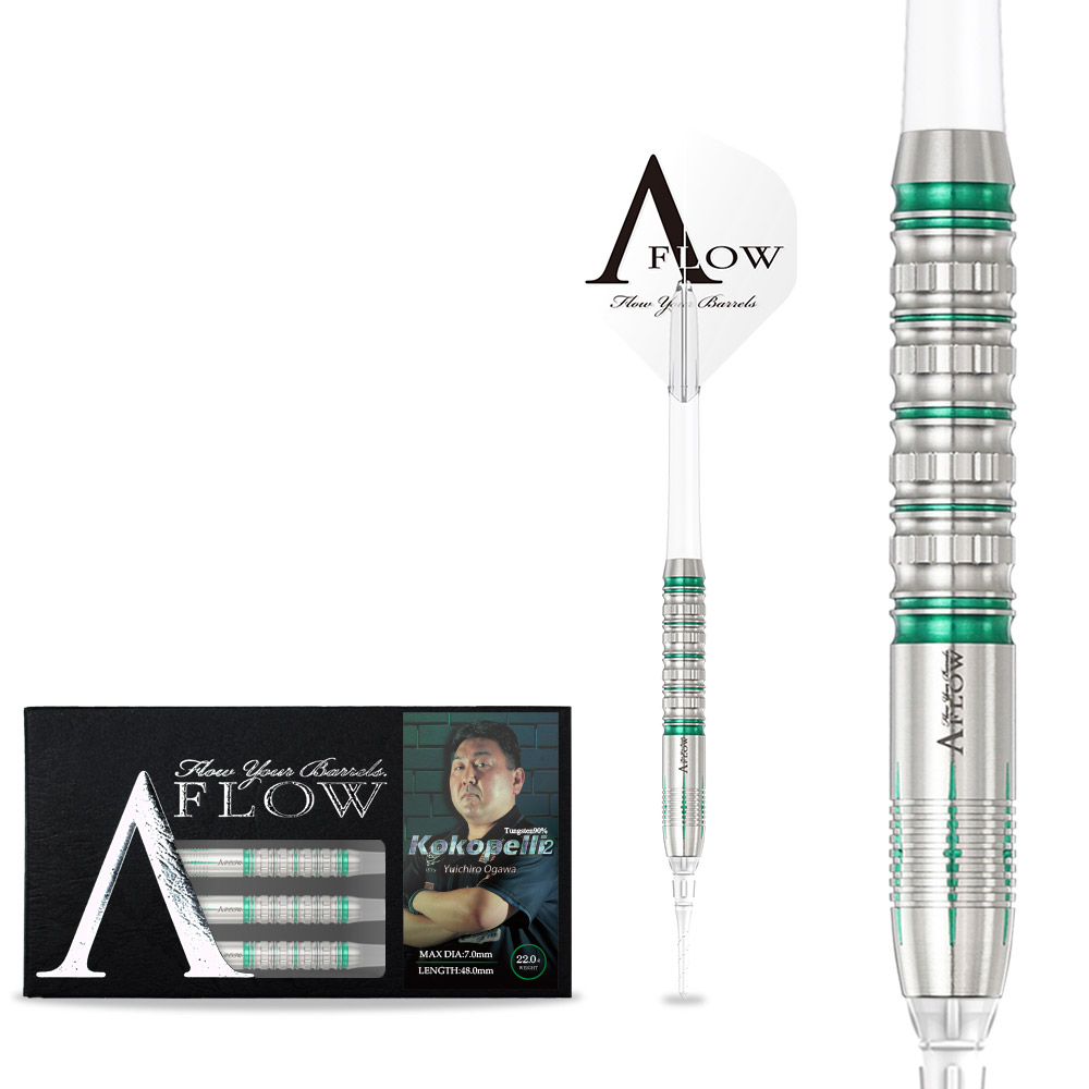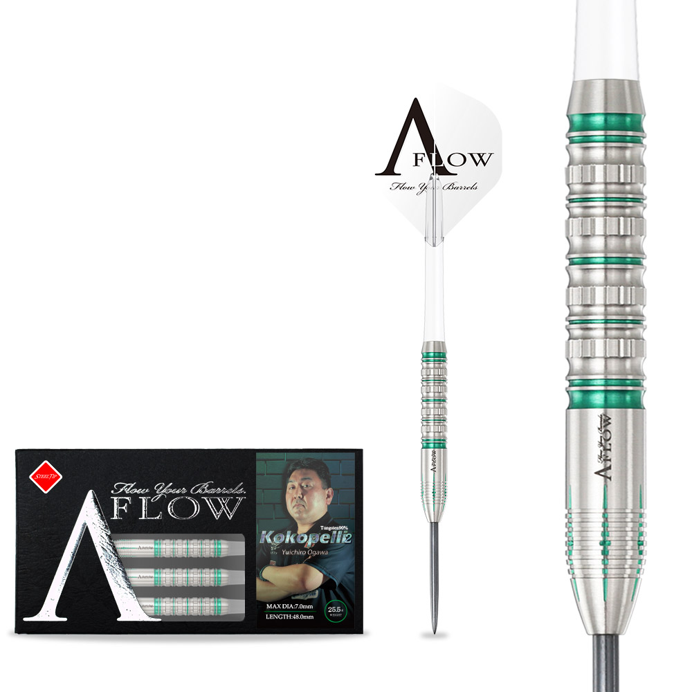 さらなる完成度を求めてロングトルピードからストレートへ。小川祐一郎選手2ndモデル 確かな品質とその所有感で高い評価を誇る日本ブランド、DYNASTY(ダイナスティ)のプロプレイヤーシリーズダーツです。 前作のフィーリングを継承しつつ、アウトラインをロングトルピードからストレートへと調整。 加えて、中央部のドライブカットを増設することで、指に吸い付くようなグリップ感と、リリース時のスムーズな抜け感を高次元で両立。 ダブルリングカットとドライブカットの組み合わせが、構えた瞬間の安心感と、狙いへ押し出す直線的な飛びをサポート。 操作性・安定性・再現性を磨き上げたKokopelli2が完成。 ■スペック 素材:タングステン90% 全長:48.0mm 最大径:7.0mm 重量:[2BA]22.0g / [STEEL]25.5g
