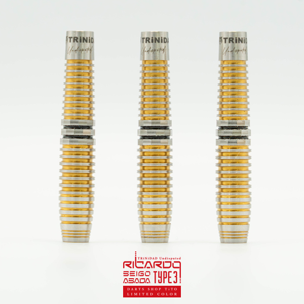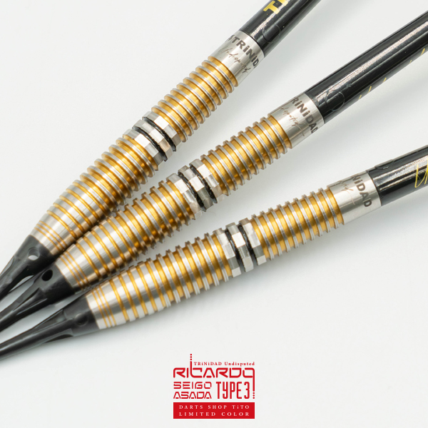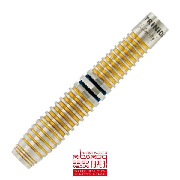 圧倒的な強さを形にした。浅田 斉吾選手モデル RICARDO TYPE3。 JAPAN TOUR 2025 ランキング1位 (2026年 1月時点) / SUPER DARTS 2025 Finalist 浅田 斉吾選手。 形状とカット、スペック、全てを大きく変更した今作。 強さの象徴というべくバレルを目標に設計し、シンプルながらも今までになかったバレルが完成。 初めて使用した試合で優勝を収めるなど、浅田 斉吾選手自身の強さとバレルの性能がマッチしているのは、圧倒的な成績が物語っています。 メインカットとセンターに配置された多角形カットとの組み合わせは、グリップに安心感を与え、スペックと形状は日本人に慣れ親しんだ数値、形状となっています。 スティールモデルは重量を22.0gに設定。 ソフトとスティール両モデルでしっかりとスローイングが再現できるような拘りとなっています。 性能面はもちろんのこと、ビジュアル面でも「強さ」をコンセプトに作られたRICARDO TYPE3をぜひ体感してください。 ■スペック [2BA/Soft] 素材:90%Tungsten 重量:21.0g 全長:44.0mm 最大径:7.6mm 重心:センター ■セット内容 バレル:3本(TiTO限定ver) 限定CONDORフライト:3枚(TiTO限定ver) CONDORティップ:3本 限定ライブカード:1枚(TiTO限定ver)