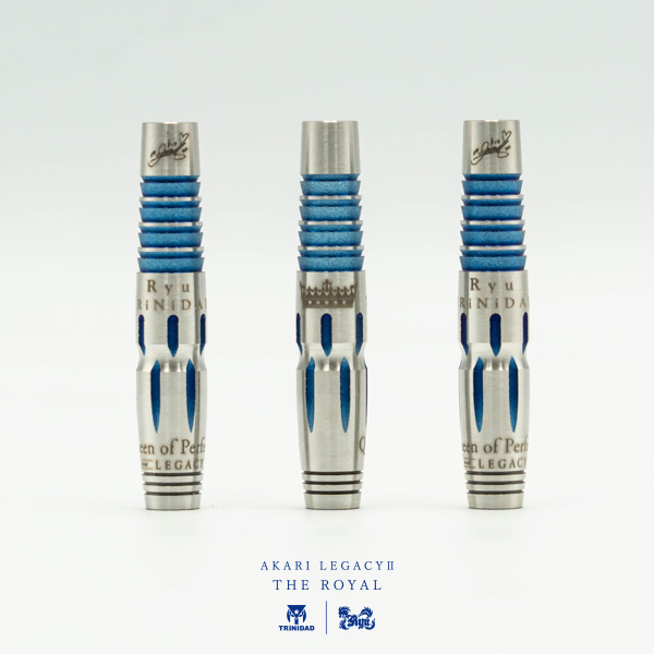 4TIMES PERFECT QUEEN AKARI OHSHIRO。 4年連続のPERFECTチャンピオンを記念してLEGACYモデルがTHE ROYALで製作。 王者の風格を「THE ROYAL」と掛け合わせたロイヤルカラーがコンセプトのスペシャルモデル。 TRiNiDAD・RYU・AKARI LEGACY・大城 明香利選手のサインが特別刻印されています。 ■スペック ※3種共通 素材:90%Tungsten 重量:20.0g 全長:40.0mm 最大径:7.4mm 重心:セミフロント ■セット内容 バレル:3本 フライト:3枚 シャフト:3本 CONDORティップ:3本