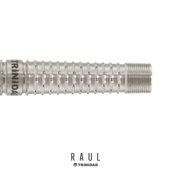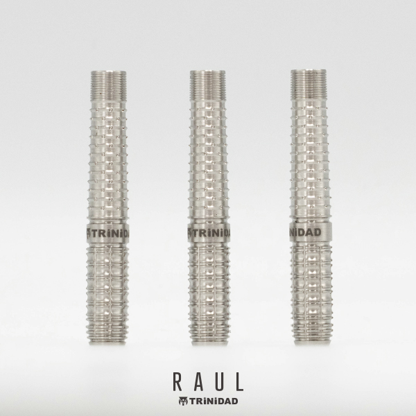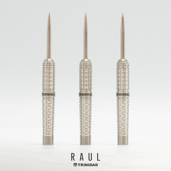 リリースの抜けの軽減とダーツに回転をかけやすくするためのカット構成。 松本 康寿 ファーストモデル RAUL。 46.5mmのロングトルピード設計。 メイングリップ部は、リリースの抜けの軽減とダーツに回転をかけやすくするためにデルタカットにドットカットを施した強めのカットを採用。 前方部にもダブルリングカットに縦カットを施して、バレル全体で強めのグリップを感じることができます。 ソフトモデルは21.5g、スティールモデルは22.5gとしっかりとした重さも感じられるバレルになっています。 ■スペック [SOFT/2BA] 素材:90%Tungsten 重量:21.5g 全長:46.5mm 最大径:7.2mm 重心:セミフロント [STEEL] 素材:90%Tungsten 重量:22.5g(ポイント含む) 全長:46.5mm 最大径:7.2mm 重心:セミフロント ■セット内容 バレル:3本 フライト:3枚 シャフト:3本 CONDORティップ:3本(2BAタイプのみ) ※付属品のフライトやシャフト・ティップの色は写真と異なる場合があります。 ※バレルのロゴの色はモニタの環境により、実物と異なる場合がございます。予めご了承ください。