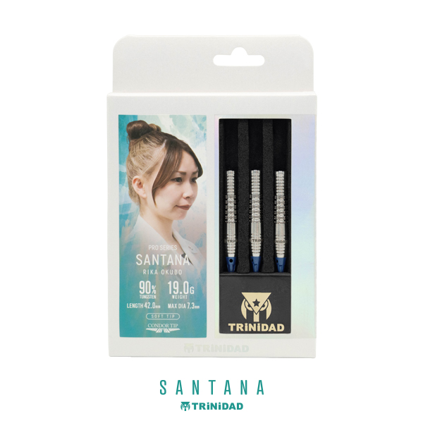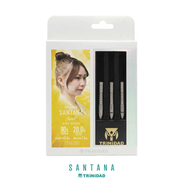 グリップテンションに左右されない、しっかりとしたリリース感。 大久保 李佳 ファーストモデル SANTANA。 スタンダードなトルピード形状と、前後にシャークカットを配置したシンプルなモデル。 メイングリップにはダブルリングと縦カットを合わせて、グリップのズレを軽減。 テーパーを活かして押し出しやすく、グリップテンションに左右されない、しっかりとしたリリース感を実現しています。 バレルの重さはソフトモデル19.0g、スティールモデル20.0gと多くのプレイヤーが扱いやすいスペックとなっており、クセのない素直なバレルになっています。 ■スペック [SOFT/2BA] 素材:90%Tungsten 重量:19.0g 全長:42.0mm 最大径:7.3mm 重心:セミフロント [STEEL] 素材:90%Tungsten 重量:20.0g(ポイント含む) 全長:42.0mm 最大径:7.3mm 重心:セミフロント ■セット内容 バレル:3本 フライト:3枚 シャフト:3本 CONDORティップ:3本(2BAタイプのみ) ※付属品のフライトやシャフト・ティップの色は写真と異なる場合があります。 ※バレルのロゴの色はモニタの環境により、実物と異なる場合がございます。予めご了承ください。