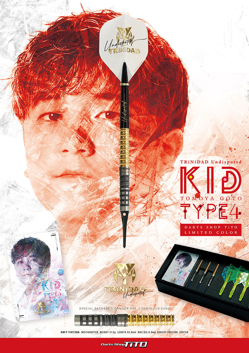 それぞれのこだわりを特化させたTYPE4。 ソフトモデルのスペックを52mmにして、メイングリップ部にはシリーズの特徴であるドットカットを配置。 6.8mmという太さと合わせて、グリップ時の安心感を持たせています。さらには前方部のカットは、指を添えるだけで力が伝わる構造を採用しています。 ■スペック [2BA/Soft] 素材:90%Tungsten 重量:21.5g 全長:52.0mm 最大径:6.8mm 重心:センター ■セット内容 特別バレル:3本 CONDOR AXEフライト:3本(限定ver) CONDORティップ:3本 限定ライブカード:1枚 ※付属品のフライトやシャフト・ティップの色は写真と異なる場合があります。 ※バレルの色はモニタの環境により、実物と異なる場合がございます。予めご了承ください。