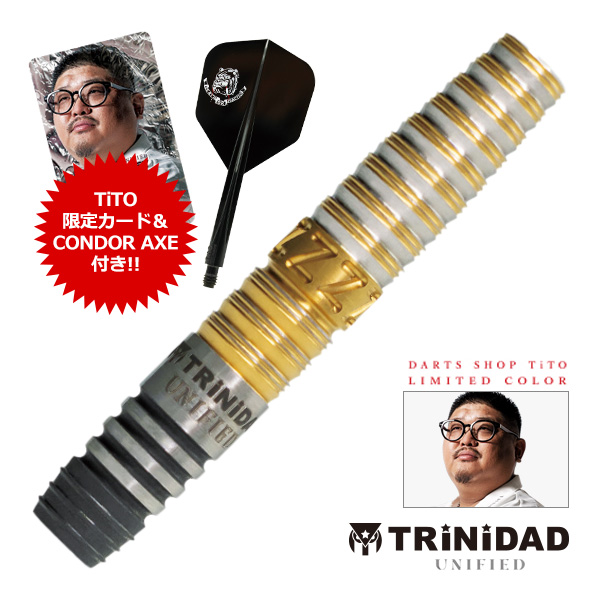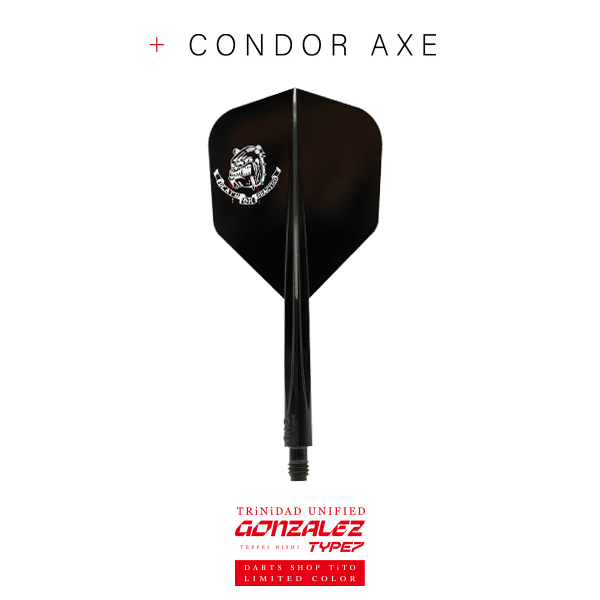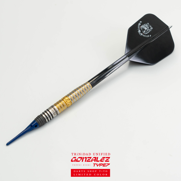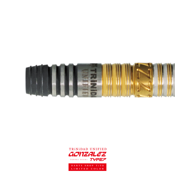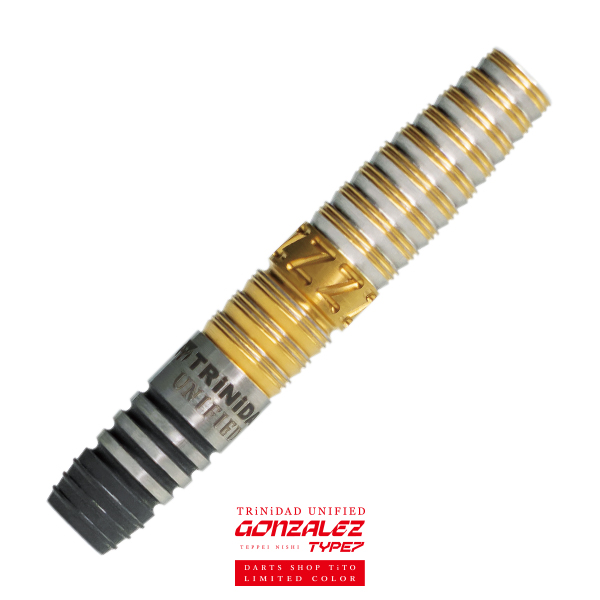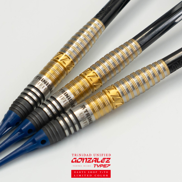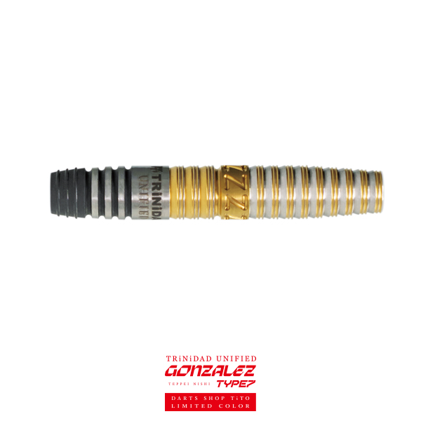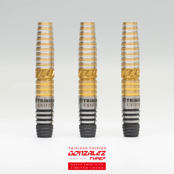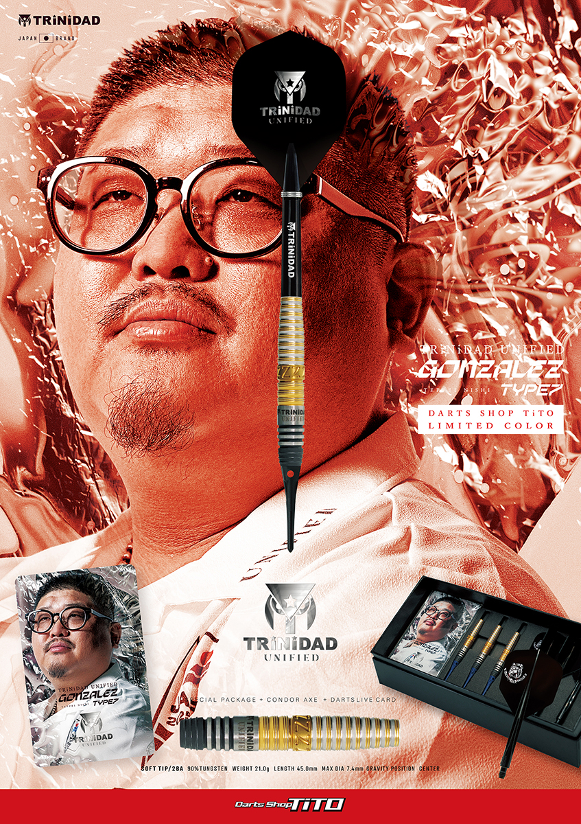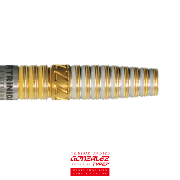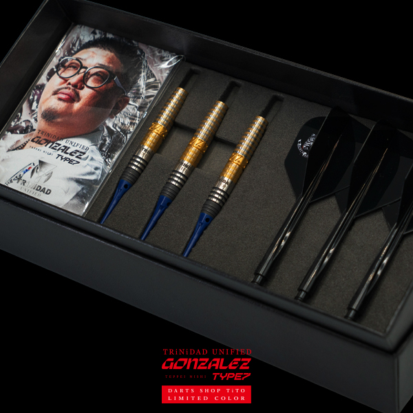 グリップへの収まりとスムースなリリース感をブラッシュアップ。 GONZALEZ TYPE7 TiTO Limited。 バレル全長を47mmから45mmへ変更し、グリップへの収まりとスムースなリリース感をブラッシュアップしています。 後方メイングリップ部のコンセプトは変えず、バレル中央部に配置したダブルリングカットは力み軽減のために配置し、前方部のマイクロカットも指を添える際に起こるミスを軽減するために採用。 マットブラックコーティングは西 哲平選手こだわりのものとなっており、投げやすさとビジュアルを両立させたバレルとなっています。 リリース感に重点を置き、非常にスムースな抜けを実感できるバレルになっています。 ■スペック [2BA/Soft] 素材:90%Tungsten 重量:21.0g 全長:45.0mm 最大径:7.4mm 重心:センター ■セット内容 特別バレル:3本 CONDOR AXEフライト:3本(限定ver) CONDORティップ:3本 限定ライブカード:1枚 ※付属品のフライトやシャフト・ティップの色は写真と異なる場合があります。 ※バレルの色はモニタの環境により、実物と異なる場合がございます。予めご了承ください