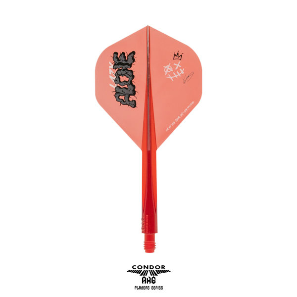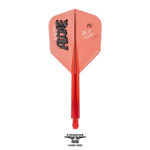 21世紀の新素材と言われる特殊樹脂を使用した硬質CONDORフライト。 その新素材を100%活かす量産方法に改善、更にネジ形状を大幅に改良。 LAZYこと松吉輝宗選手デザインのCONDOR AXE! ■特徴 ・バネの様な弾性力 0.4mm極薄仕様の羽部分。 指で潰しても元に戻り完璧な90度を保ちます。 ・いまだかつてない弾力性、桁違いの耐久性 ・従来のCONDORより重い CONDOR:1.42g CONDOR AXE:1.60g ※Small Lで計測/1本のみの重さ ・フライトがぶつかる心地よい音 更に、シャフトが硬いので、従来のCONDORとは、また違う狙い方が可能に。 ■スペック フライト形状(カラー):レッド シャフトサイズ:S / M / L / XL シャフト部分の長さ:S 21.5mm/M 27.5mm/L 33.5mm / XL 37.5mm(ネジ山含まず) 【特許取得済/PATENTED】 「CONDORの類似品が出回っております、ご購入の際はCONDORとご確認の上、ご購入ください。」 The Similar CONDOR products are now available in the market. Please check with CONDOR before purchasing.