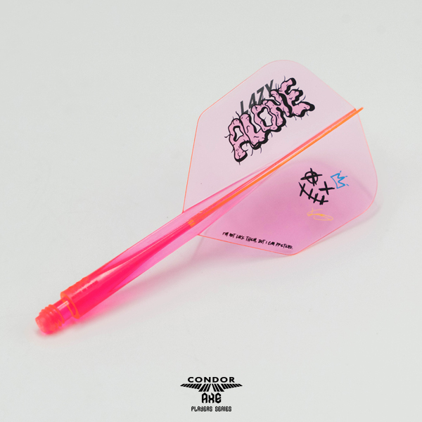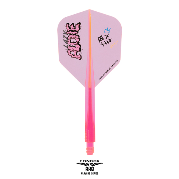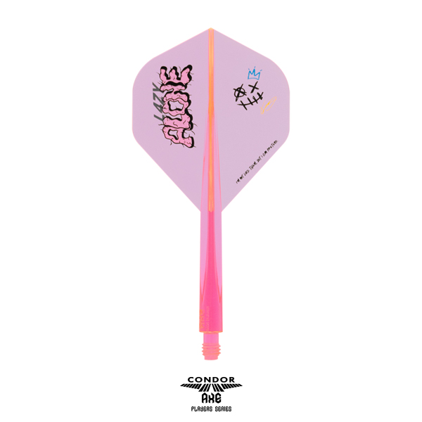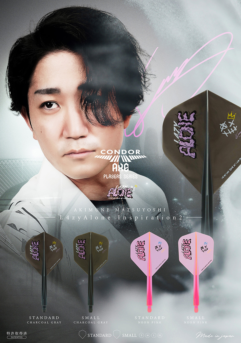 21世紀の新素材と言われる特殊樹脂を使用した硬質CONDORフライト。 その新素材を100%活かす量産方法に改善、更にネジ形状を大幅に改良。 LAZYこと松吉輝宗選手デザインのCONDOR AXE! ■特徴 ・バネの様な弾性力 0.4mm極薄仕様の羽部分。 指で潰しても元に戻り完璧な90度を保ちます。 ・いまだかつてない弾力性、桁違いの耐久性 ・従来のCONDORより重い CONDOR:1.42g CONDOR AXE:1.60g ※Small Lで計測/1本のみの重さ ・フライトがぶつかる心地よい音 更に、シャフトが硬いので、従来のCONDORとは、また違う狙い方が可能に。 ■スペック フライト形状(カラー):CHARCOAL GRAY / NEON PINK シャフトサイズ:S / M / L / XL シャフト部分の長さ:S 21.5mm/M 27.5mm/L 33.5mm / XL 37.5mm(ネジ山含まず) 【特許取得済/PATENTED】 「CONDORの類似品が出回っております、ご購入の際はCONDORとご確認の上、ご購入ください。」 The Similar CONDOR products are now available in the market. Please check with CONDOR before purchasing.