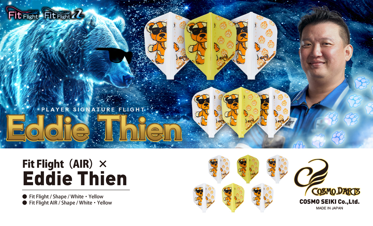 マレーシアのトップ選手、エディ・ティエン選手の初コラボフライトが登場! デザインの主役となっているクールなベアデザインが魅力。 ホワイト&イエローのコントラストが個性的な、エディ選手の世界観を象徴するフライトです!