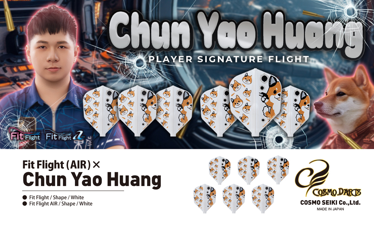 台湾で活躍する、チュン・ヤオ・ファン選手の記念すべき1作目のフライトが登場! キュートな柴犬デザインがセッティングに遊び心をプラス。 可愛さの中に個性が光る、注目のプレイヤーモデルです。 形状:シェイプ