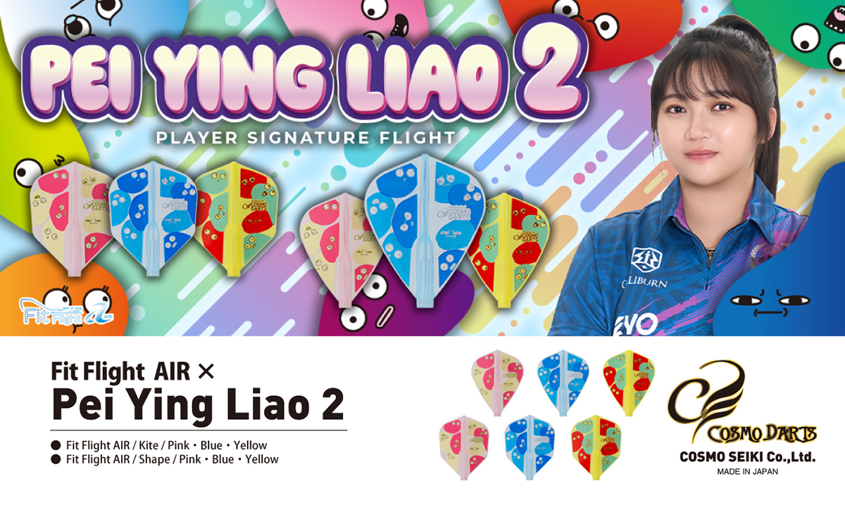台湾のCOSMO DARTSプレーヤー、ペイ・イン・リャオ選手モデル第2弾が登場。 カラフルなベースカラーに、いろんな表情のゆるかわいいイラストが描かれています。