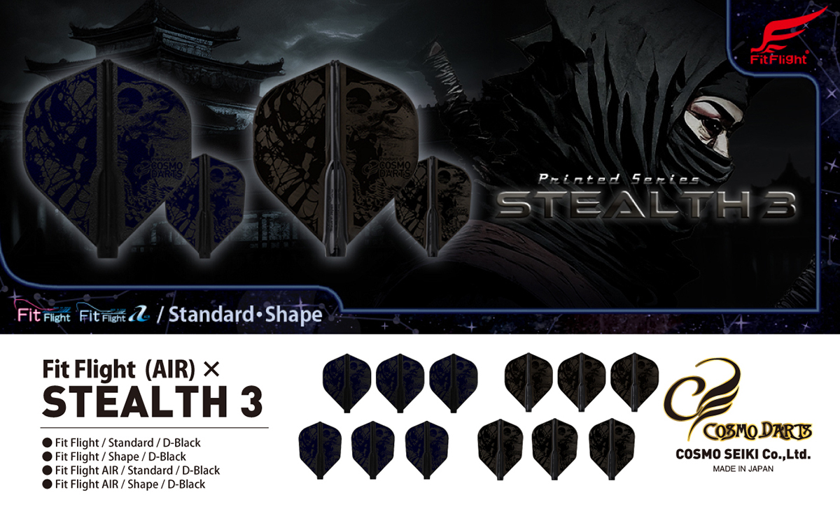 Printed Series「STEALTH」の第3弾が登場! 闇夜に隠れ任を背負い、影に生きる忍者を表現しました。 角度によって、浮かび上がるデザインが魅力のフライトです。 ■形状:スタンダード/シェイプ