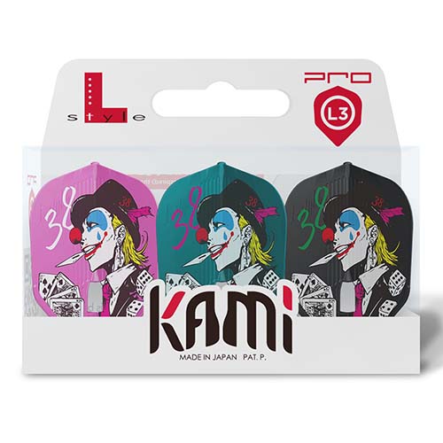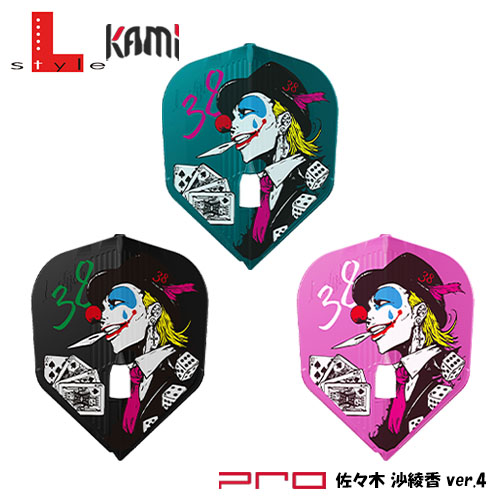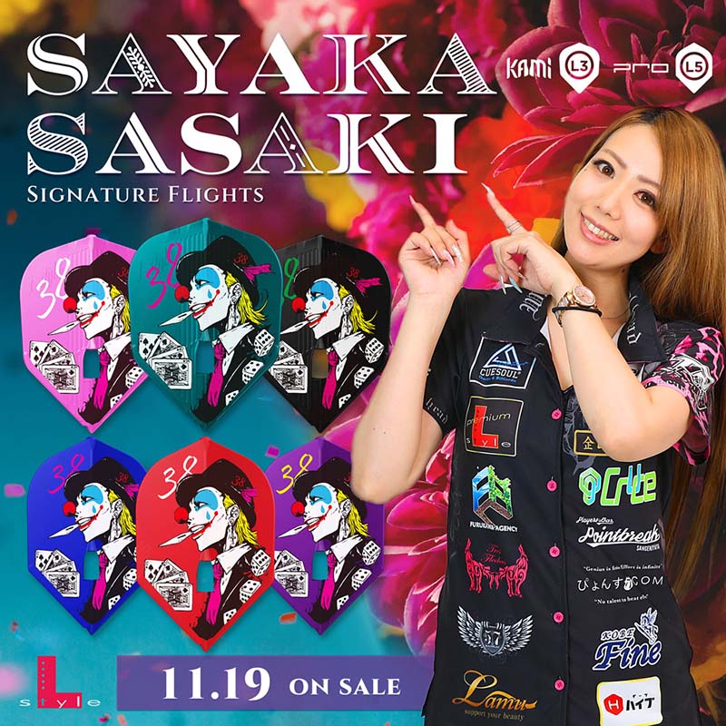 佐々木沙綾香選手のエルフライト第4弾。 スタイリッシュなピエロのイラストにトランプ、目を引くデザインフライトに仕上がってます。 ■形状:シェイプ ■1セット:3個入り