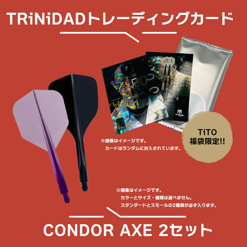 ■セット内容 ・TiTO限定カラーTRiNiDADバレル(種類は選べません、バレルのみ) ・TRiNiDADバレル(お好きなバレルが選べます) ・TRiNiDAD 福袋限定タオル ・TRiNiDAD 福袋限定TRiNiDADロゴステンレスタンブラー ・TRiNiDAD 福袋限定選手イラストアクリルキーホルダー(種類は選べません) ・TRiNiDAD 福袋限定TRiNiDADトレーディングカード ・TRiNiDAD Darts Case KUMA(限定カラー) ・CONDOR AXEフライト Standard(カラー、サイズ、種類は選べません) ・CONDOR AXEフライト Small(カラー、サイズ、種類は選べません) ・TRiNiD×FOOT 福袋限定巾着 ・西哲平選手2026年カレンダー ■ご注意点 ・初期不良以外での返品・交換・キャンセルは出来ません。 ・中身をお選びいただくことは出来ません。 ・同じ福袋を複数お買い上げの場合、内容物に差異がない可能性もございます。 ・クーポンの対象外となります。 ・数量限定商品のため期間内でも無くなり次第終了となります。 ・発送後のキャンセルはお受けできません。 ・受取拒否をされた場合、今後当店でのお買い物をお断りさせていただきます。