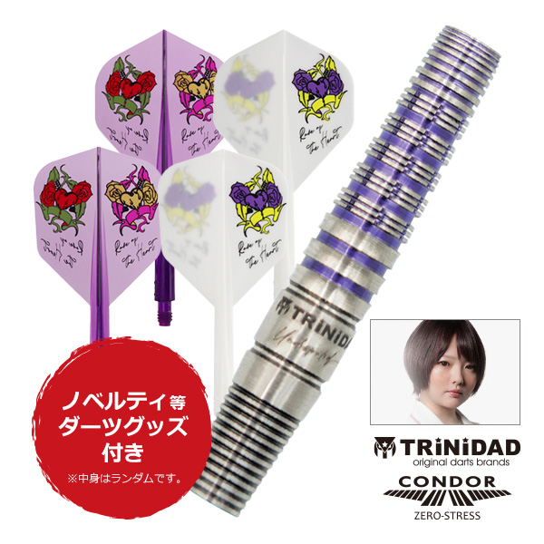 岩田夏海選手モデルのバレル&フライトセット! ■セット内容 ・TRiNiDAD Undisputed Romero3 ・CONDOR AXE Rose of the Heart(サイズ・カラー選択可) ・ダーツグッズ(ランダム)