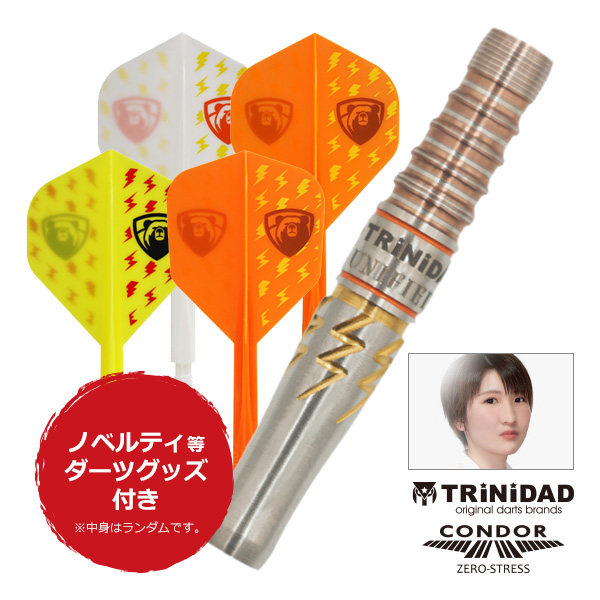 宮脇実由選手モデルのバレル&フライトセット! ■セット内容 ・TRiNiDAD UNIFIED Roman6 ・CONDOR AXE THUNDER BITE(サイズ・カラー選択可) ・ダーツグッズ(ランダム)